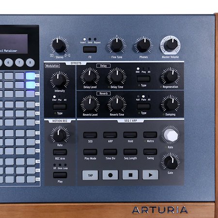 Für kreative Performances verfügt der PolyBrute über einen integrierten Arpeggiator und Sequencer sowie über Split- und Layer-Funktionen, mit denen mehrere Sounds gleichzeitig gespielt oder auf verschiedene Tastaturbereiche verteilt werden können.