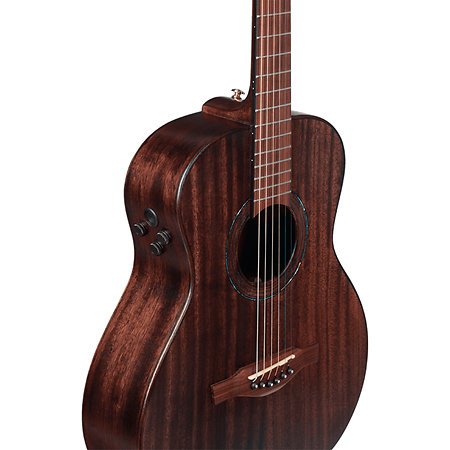 Die Gitarre besteht vollständig aus Massivholz: Die Decke aus südamerikanischem Roupan, der Boden und die Zargen aus Mahagoni sowie der Mahagonihals mit einem Roupan-Griffbrett. Diese Kombination sorgt für einen warmen, ausgewogenen Klang mit vollen Bässen und klaren Höhen. Die satinierte „open pore“-Oberfläche betont das natürliche Aussehen des Holzes und lässt den Klang optimal zur Geltung kommen.