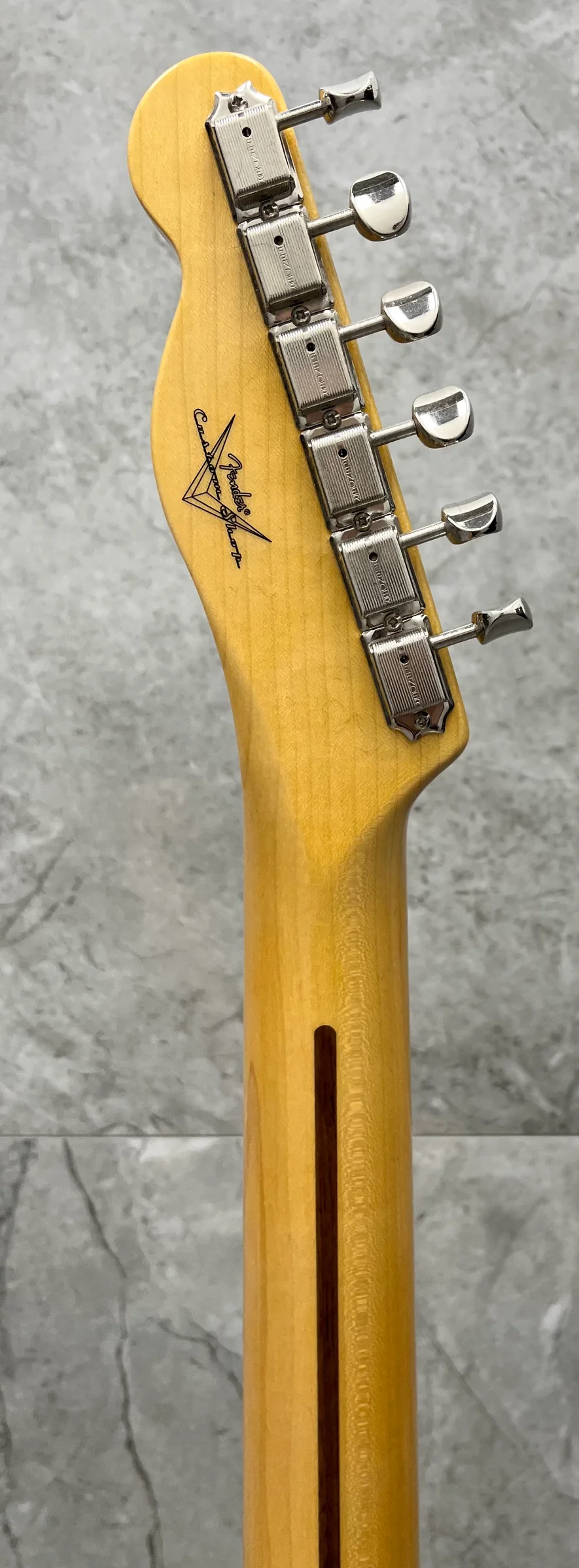 Dieses 1954er Modell bewahrt die ikonischen Merkmale der begehrten frühen Telecaster®-Gitarren und verfügt über einen zweiteiligen Korpus aus ausgesuchter Esche (mit versetzter Naht auf der Diskantseite), einen einteiligen, riftgesägten Ahornhals mit dem typischen „U“-Profil von 1954 und einem Vintage-Compound-Griffbrettradius von 7,25″ bis 9,5″. Ausgestattet mit zwei handgewickelten Loaded ’51 Nocaster® Pickups aus dem Custom Shop, bietet diese Gitarre die Klarheit und den typischen Twang einer frühen 50er-Jahre-Tele®, jedoch mit etwas mehr Power.