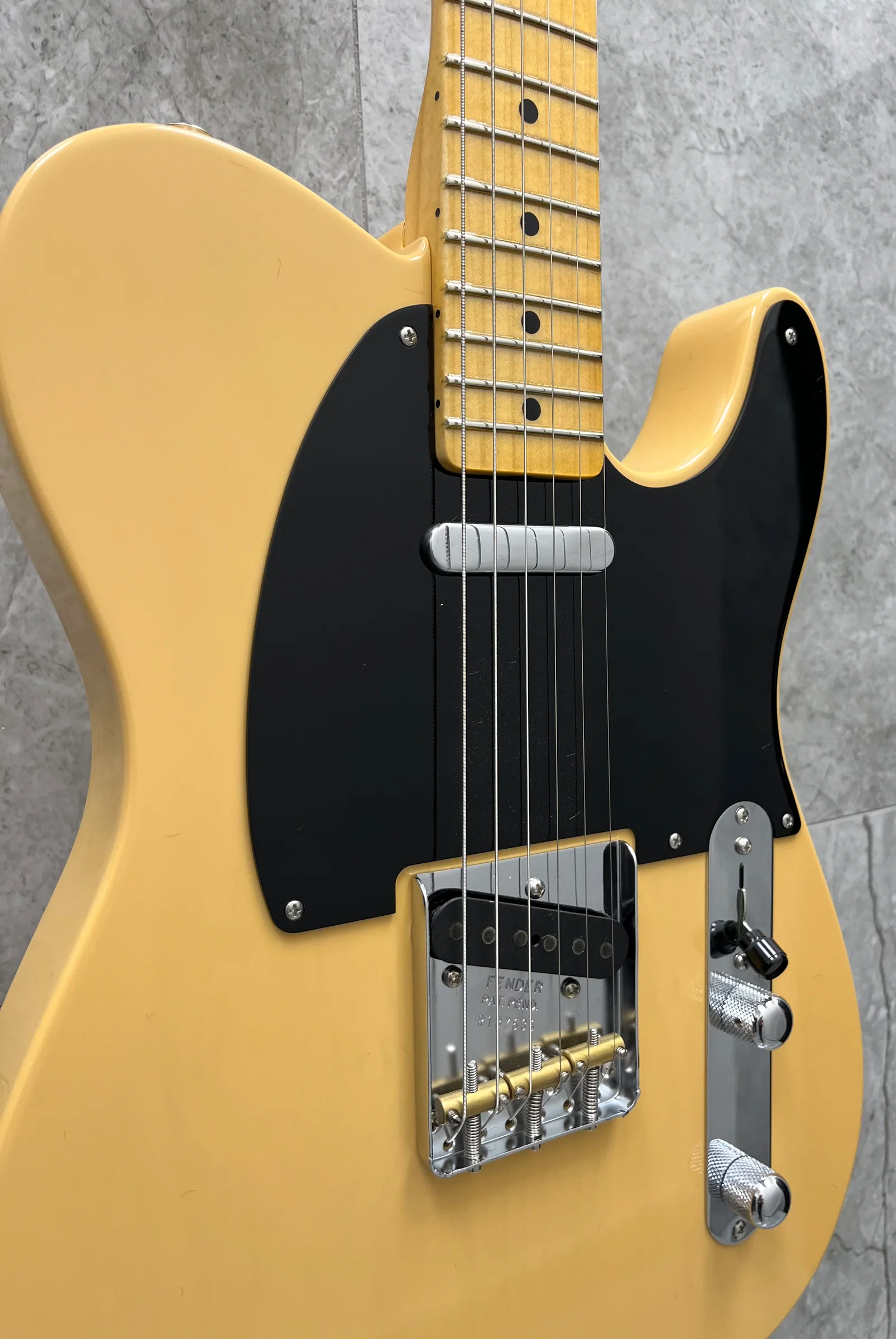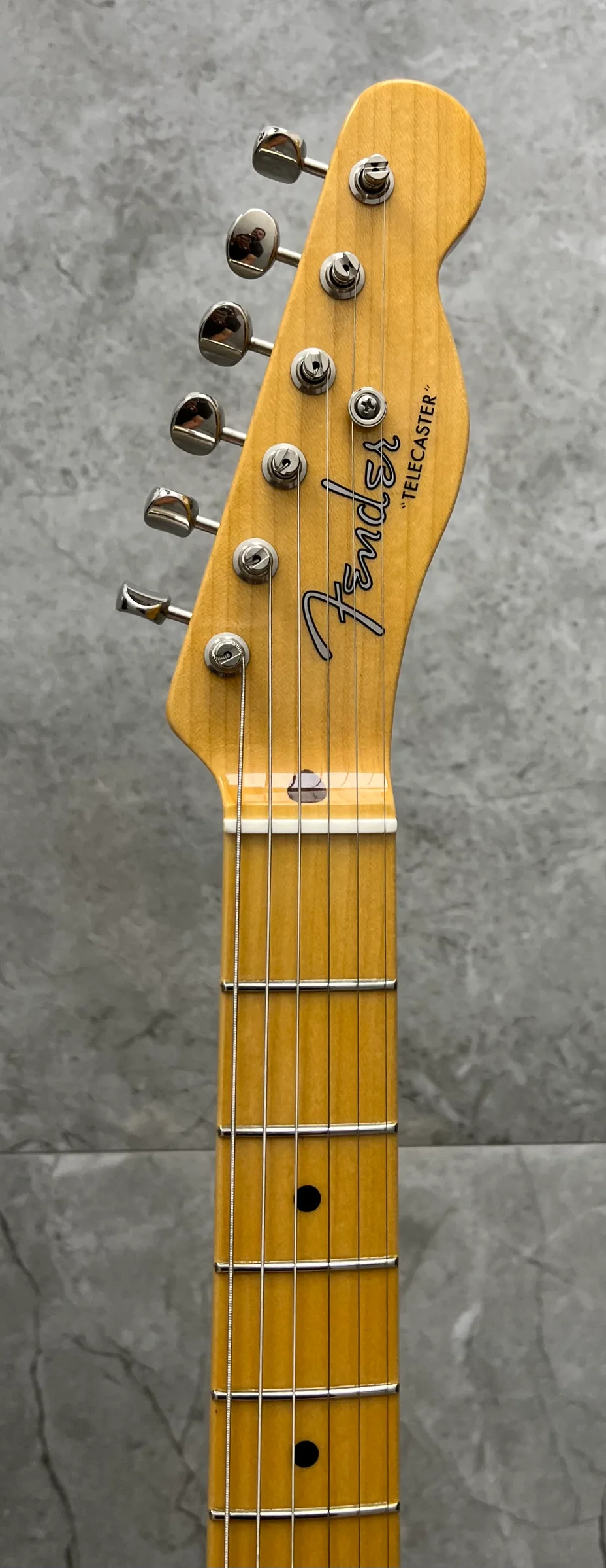 Zu den weiteren Premium-Features gehören 21 Medium-Vintage-Bünde (47095), die typische 50er-Jahre-Tele-Verkabelung, ein 3-Wege-Schalter, ein einlagiges schwarzes Phenolharz-Schlagbrett, eine 51-54 Tele®-Brücke mit Messing-Saitenreitern, Vintage-Mechaniken, ein Knochensattel, ein Saitenniederhalter, ein Deluxe-Hartschalenkoffer, ein Gitarrengurt und ein Echtheitszertifikat.