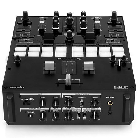 Die AlphaTheta DJM-S7 orientiert sich direkt am High-End-Modell Pioneer DJ DJM-S11 und übernimmt das Battle-DNA-Konzept der DJM-S-Serie.