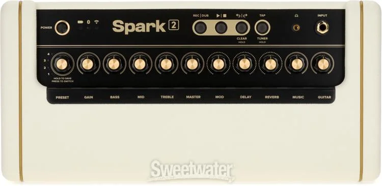 Die brandneue HD-Verstärkermodellierungs-Engine des Spark 2, basierend auf Sonic IQ Computational Audio, bietet eine beeindruckende Auswahl an herausragenden Sounds. Profitieren Sie von der doppelten Rechenleistung des ursprünglichen Spark und erhalten Sie modernste Röhrenemulationen, speziell abgestimmte Filterdesigns und realistische Cab-Simulations-IRs. Integrierte Multiband-Dynamikkompression, virtuelle Bassanhebung und verbesserte Stereoabbildung verstärken Ihren Sound zusätzlich. Mit Spark AI können Sie außerdem einzigartige Sounds erstellen und anhören, indem Sie einige Fragen beantworten. Die beiden angewinkelten 4-Zoll-FRFR-Lautsprecher und Bassreflexöffnungen des Spark 2 sorgen für einen großzügigen Frequenzgang, eine immersive Stereoabbildung und raumfüllende Bässe.