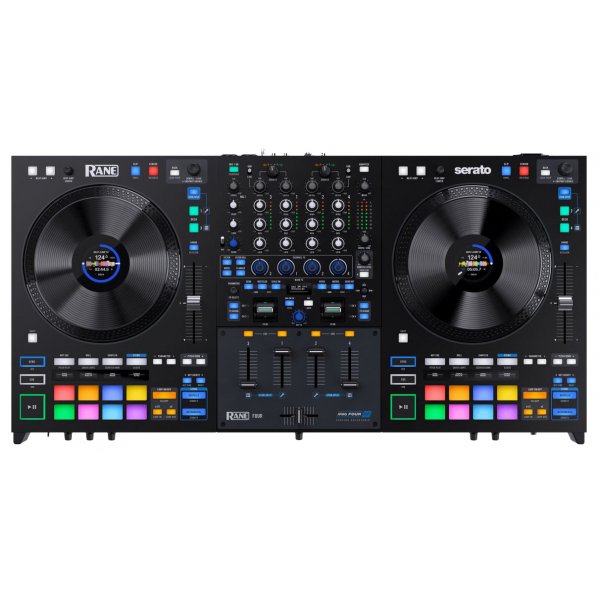 Der RANE FOUR ist ein High-End 4-Kanal-DJ-Controller, entwickelt für anspruchsvolle DJs und kreative Performance. In Zusammenarbeit mit Serato kombiniert er robuste Bauweise, erstklassige Klangqualität und innovative Features, um das Potenzial von Serato Stems voll auszuschöpfen.