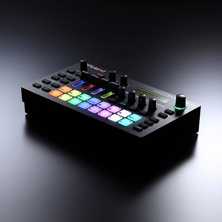 Der integrierte 4-Spur Sequencer ermöglicht das Erstellen kompletter Tracks mit Beats, Basslines, Melodien und Soundtexturen. Die 16 RGB-Pads erlauben eine intuitive Steuerung zum Triggern von Clips, Programmieren von Patterns und Spielen von Sounds in Echtzeit.